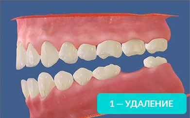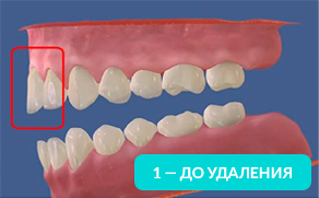 На рисунке справа видно, какие щели между зубов образуются уже через год, после удаления.
