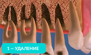 Убыль костной ткани распространяется на соседние зубы и их корни постепенно обнажаются!